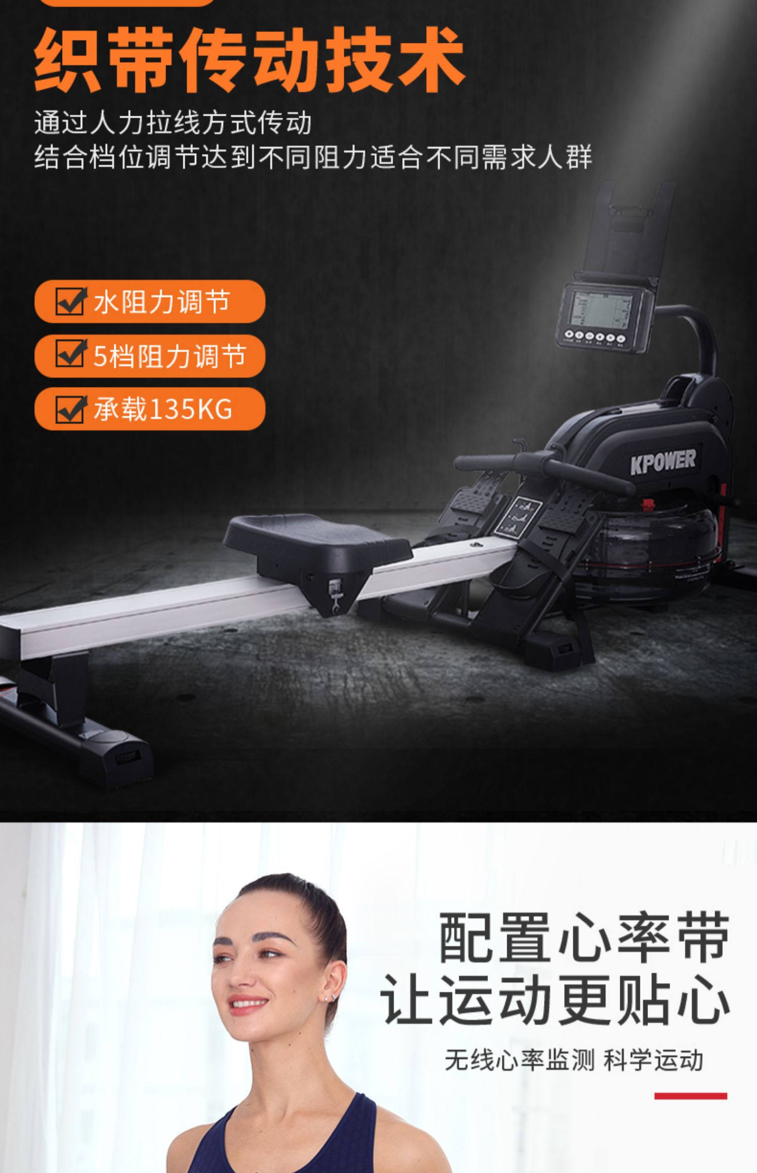 K7116康乐佳水阻划船机家用简易划桨健身器材商用划船器室内
